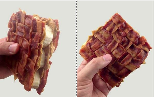 Yes, it’s a “peanut butter – bacon – banana” sandwich, but in this case, the bacon is the bread! Weaves together, the bacon hold a thick slab of banana and creamy peanut butter – all of your important food groups on one plate!