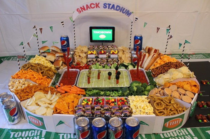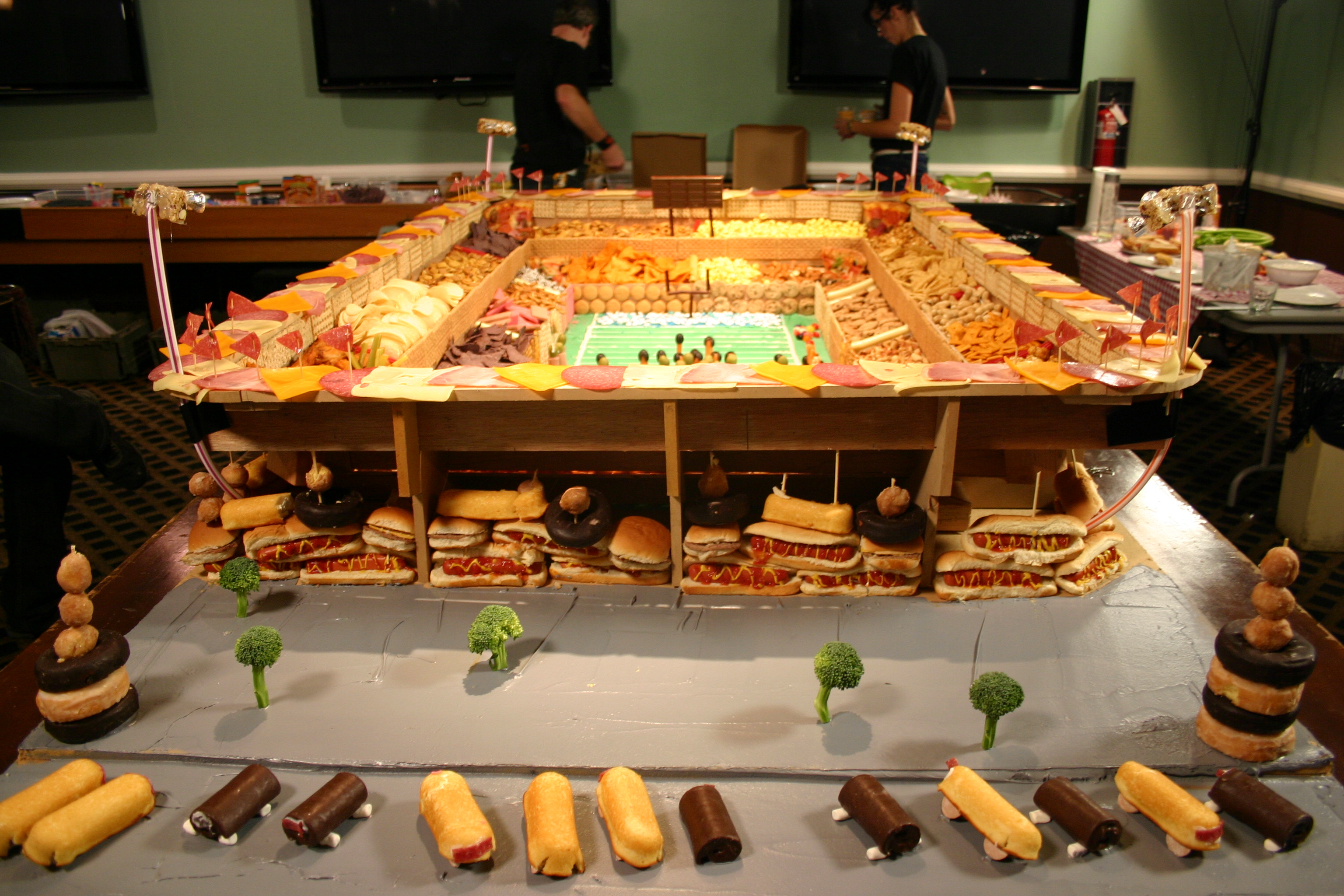 And of course, you can never go wrong when you unveil a snack stadium that looks like this – all of these great pics raise a question: how much food IS eaten on Super Sunday?