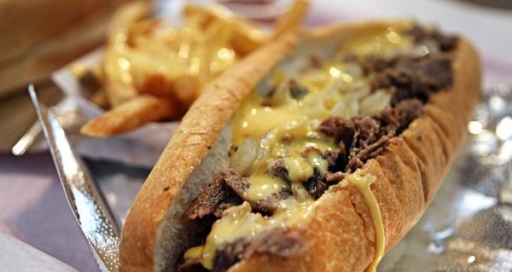 I found this description for the Philly Cheesesteak sandwich on a website: