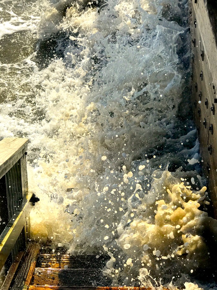 I wanted to capture the power of the ocean, especially when the tide was at its highest, so I perched myself on the top step and pointed down to the bottom of the steps – and this happened: