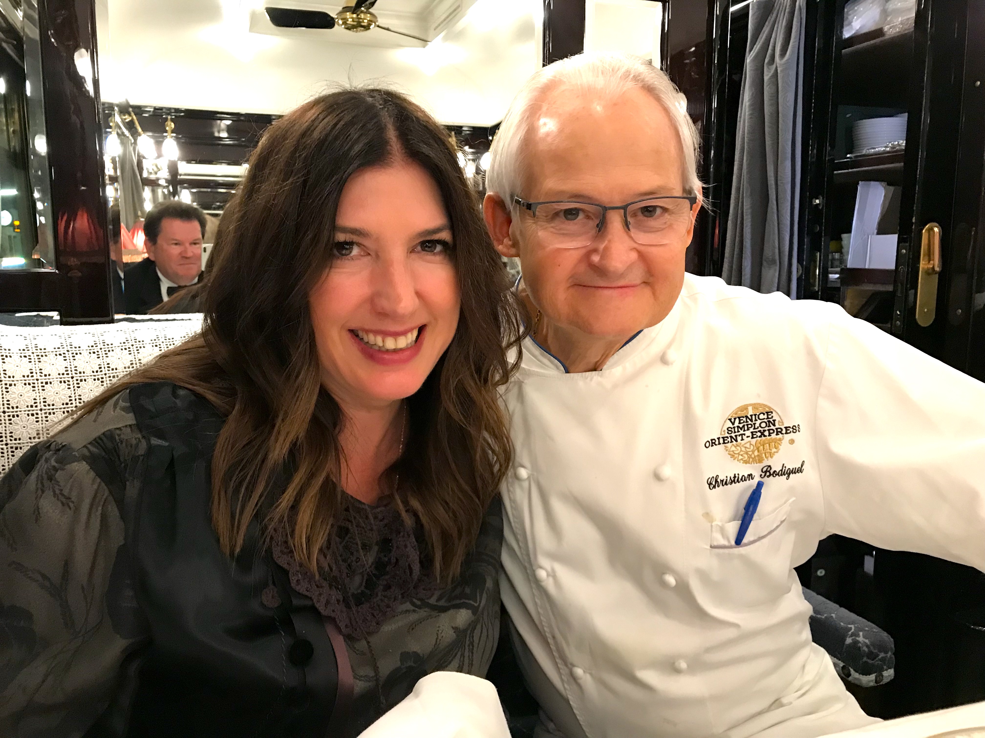 The Venice Simplon Orient Express Chef de Cuisine Christian Bodiguel stopped by our table after the meal and got a picture with Alex, and yes, I found a way to not only take the picture but photobomb it as well:
