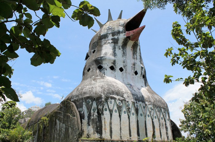 “The idea for the Chicken Church, also known as Gereja Ayam, first came to Daniel Alamsjah in 1988, when he had a vision following his evening prayers. In the vision, he saw a snow-white dove resting atop a hill, and a disembodied voice instructed him to build a house of worship for all people.