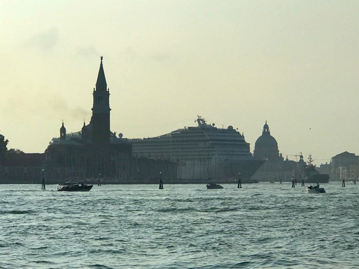 Look at the size of that Mega Cruise Ship! We watched as it slowly paraded past San Marco Square before heading off to dock – and it was one of FOUR mega cruise ships we saw arrive in a single day!