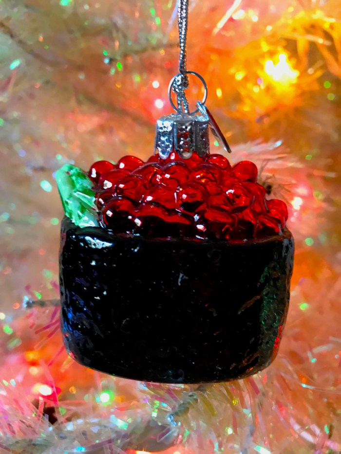 Thanks to everyone who has given me good-related ornaments – like these from Kareen, Chris and Harrison – yes, sushi!
