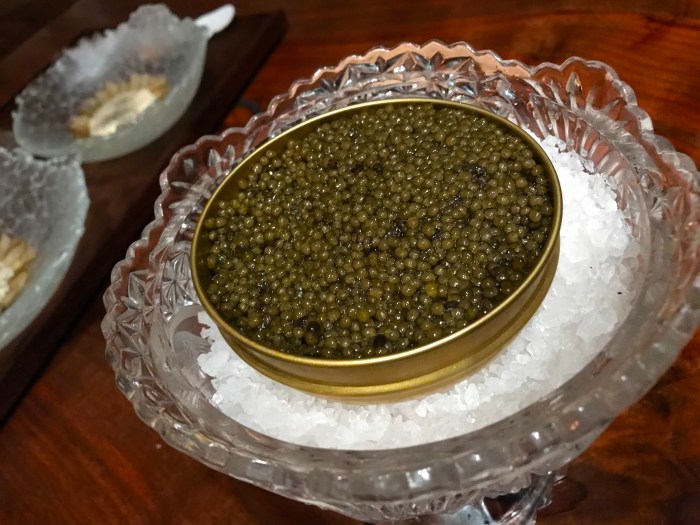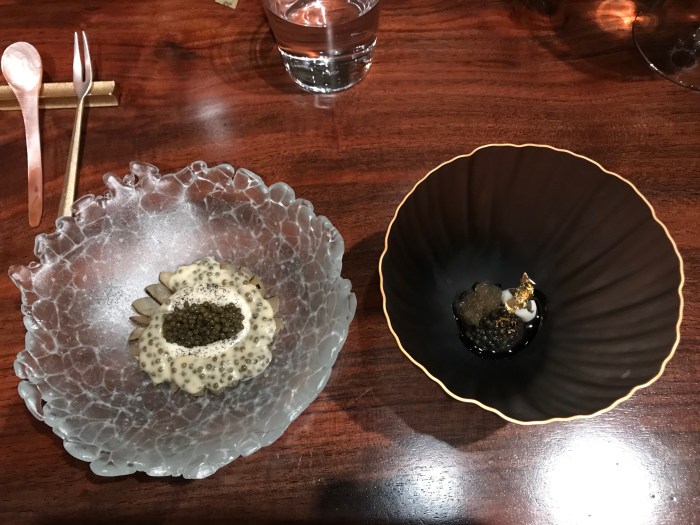 Yes, caviar with gold leaf was next, and for a supplement, we added one more caviar dish as well, finished table side: