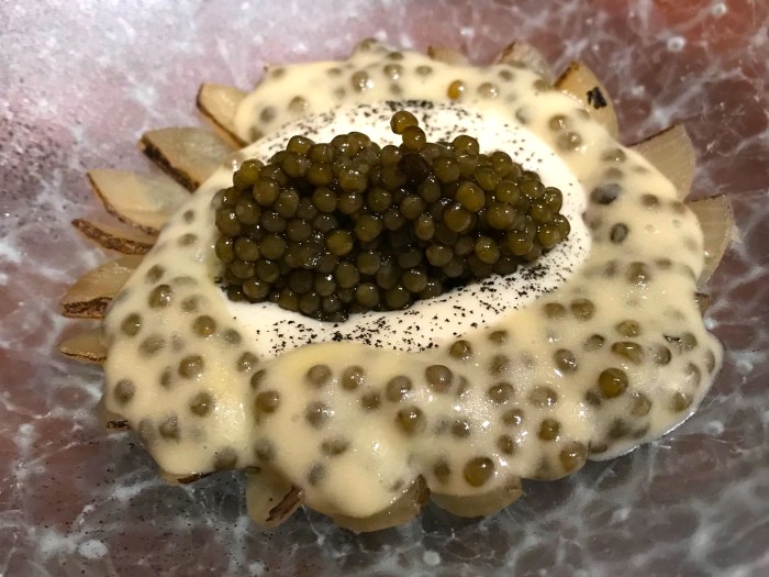 Yes, this second dish of caviar with thin slices of onion surrounding a potato cream! This was phenomenal and they serve both dishes at once so you can compare and contrast!