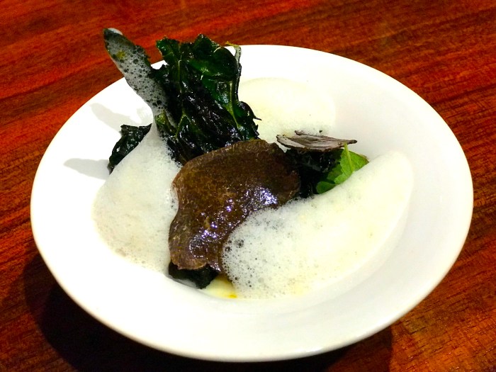 While the menu calls it seaweed, the servers referred to it as “sea grass” – and here is how they finish the dish at the table – as you have noticed, most dishes are completed at the table!