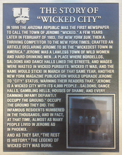 Well, it looks pretty serene now, but recently I toured America’s most notorious town, known as “Wicked City”! This plaque explains why: