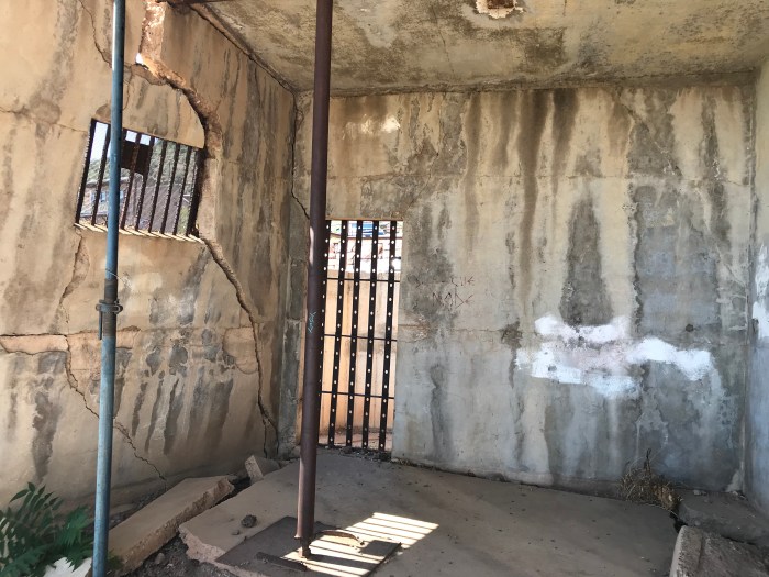 As you can see, “wicked city” has no need for this jail any longer – but the town is a great place to see remnants of the “wicked” past, with the sliding jail gazing out at the copper mines that once brought such raucous life to this area: