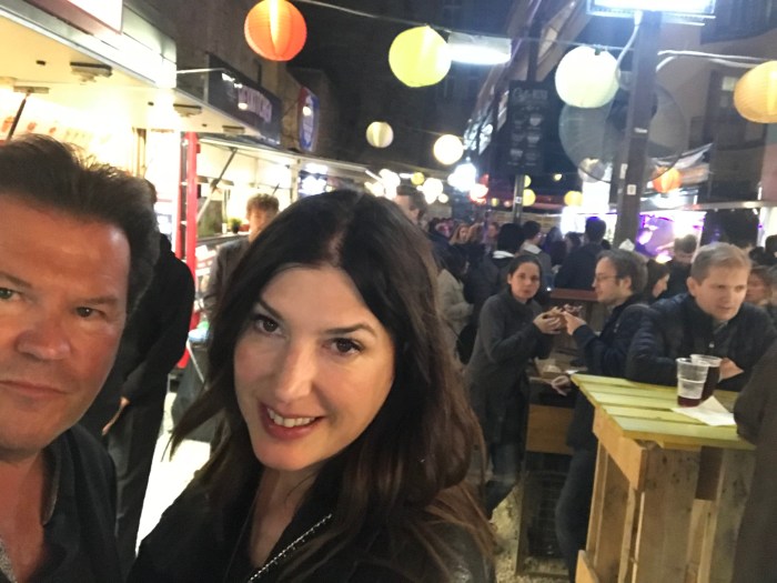 We headed into the Karavan food court, lined on both sides with takeaway food stalls and bars – lots and lots of bars…it was crowded but not uncomfortably so – and everyone was in great spirits, so we got in line and got some drinks – and pondered a local delicacy: