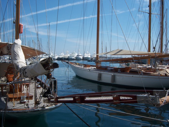 Up ahead, just more than two miles from the Palm Beach, sits the Palais du Festival, where the film festival is held each year…and on the other side is the Cannes harbor, filled with boats of all shapes and sizes, and some Yachts as well: