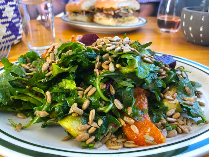 baby lettuce, tangerine, cara cara, fennel, beets, avocado, currants, sunflower seeds, poblano-lime vinaigrette