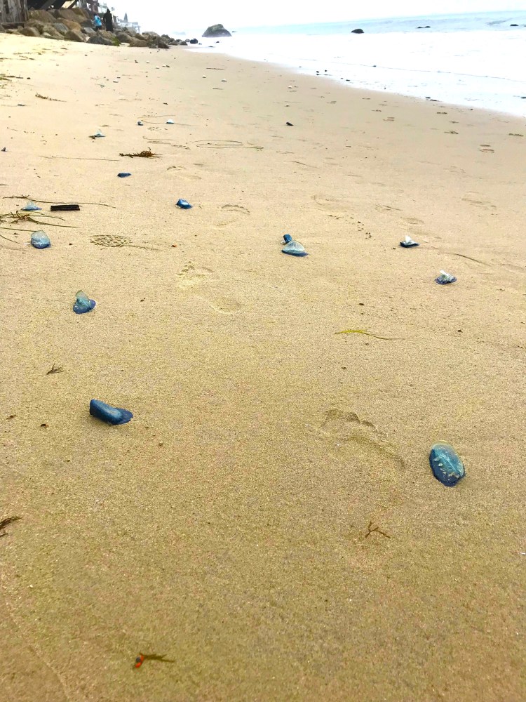 Published at 3024 × 4032 in Wild Blue Jellyfish Invade Malibu! These Unique “By-The Wind” Sailors Attack The West Coast!