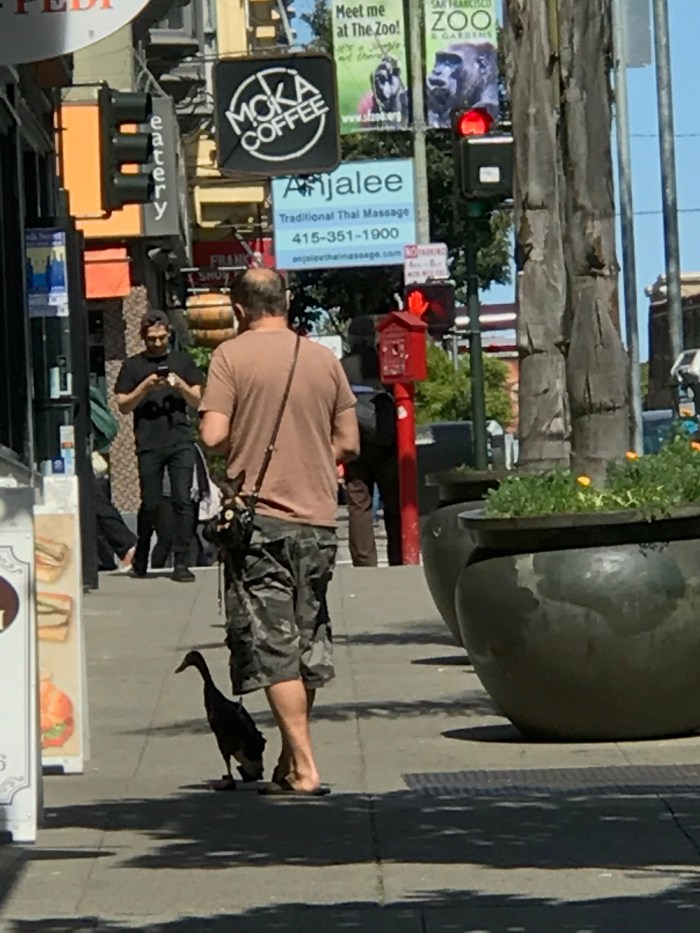 Like recently, when I was in San Francisco and saw a man walking his duck – yes: