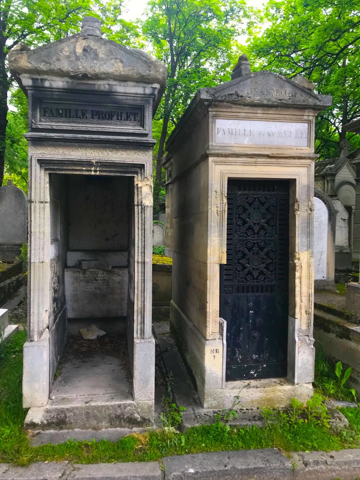 The cemetery combines the remains of multiple family members in the same grave site. At Père Lachaise, they often reopen a grave after a body has decomposed and inter another coffin – of course, when it’s the same family.