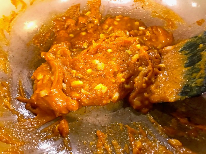 I added my Paprika, which was mixed with curry powder, nutmeg and flour, and added the two together, also adding tomato paste, sherry, etc as the recipe states…once I had my Roux smooth, I added the rest of the liquid to give it a smoothness and body…