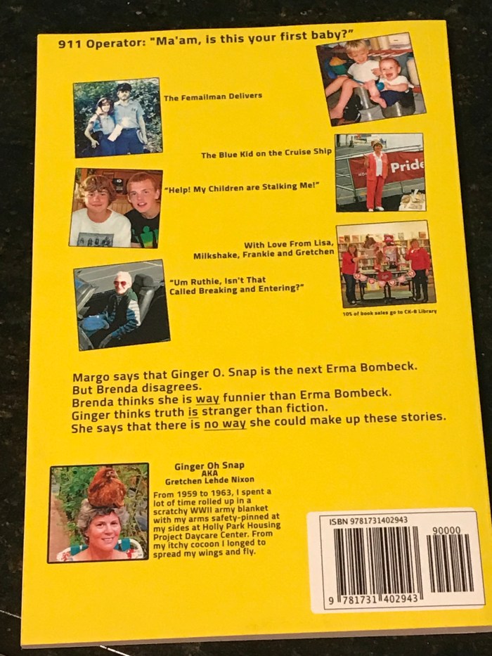 I’m excited to board the Wednesday Bookmobile and share a great book from Gretchen Lehde Nixon – AKA Ginger O. Snap – a longtime friend from high school who wrote a hilarious book!