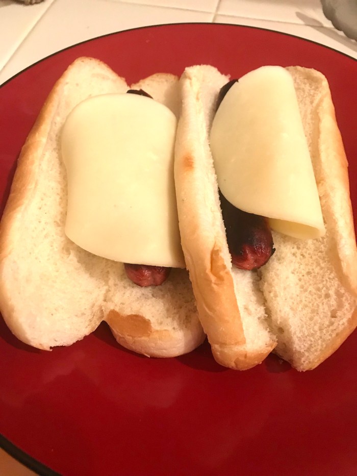 It is not unknown for me to enjoy a toasted frankfurter sandwich with mustard, and add cheddar cheese too.