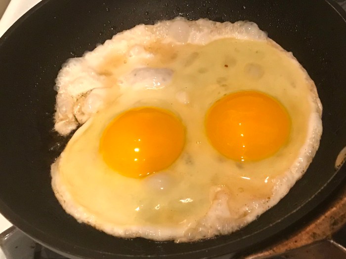 As you can see, the buns actually hold the eggs better than a plate would! And, if you zoom in enough, you don’t even know what’s going on in there!