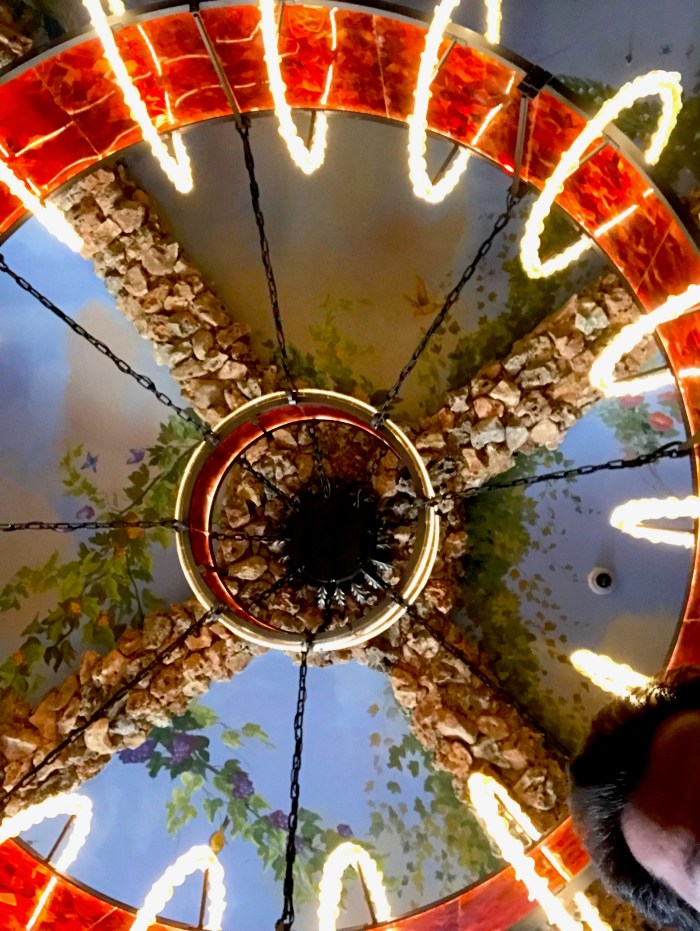The incredible Del Dotto Wine Cave in Napa Valley has a unique Chandelier from Italy, so I had to capture it – with my forehead.