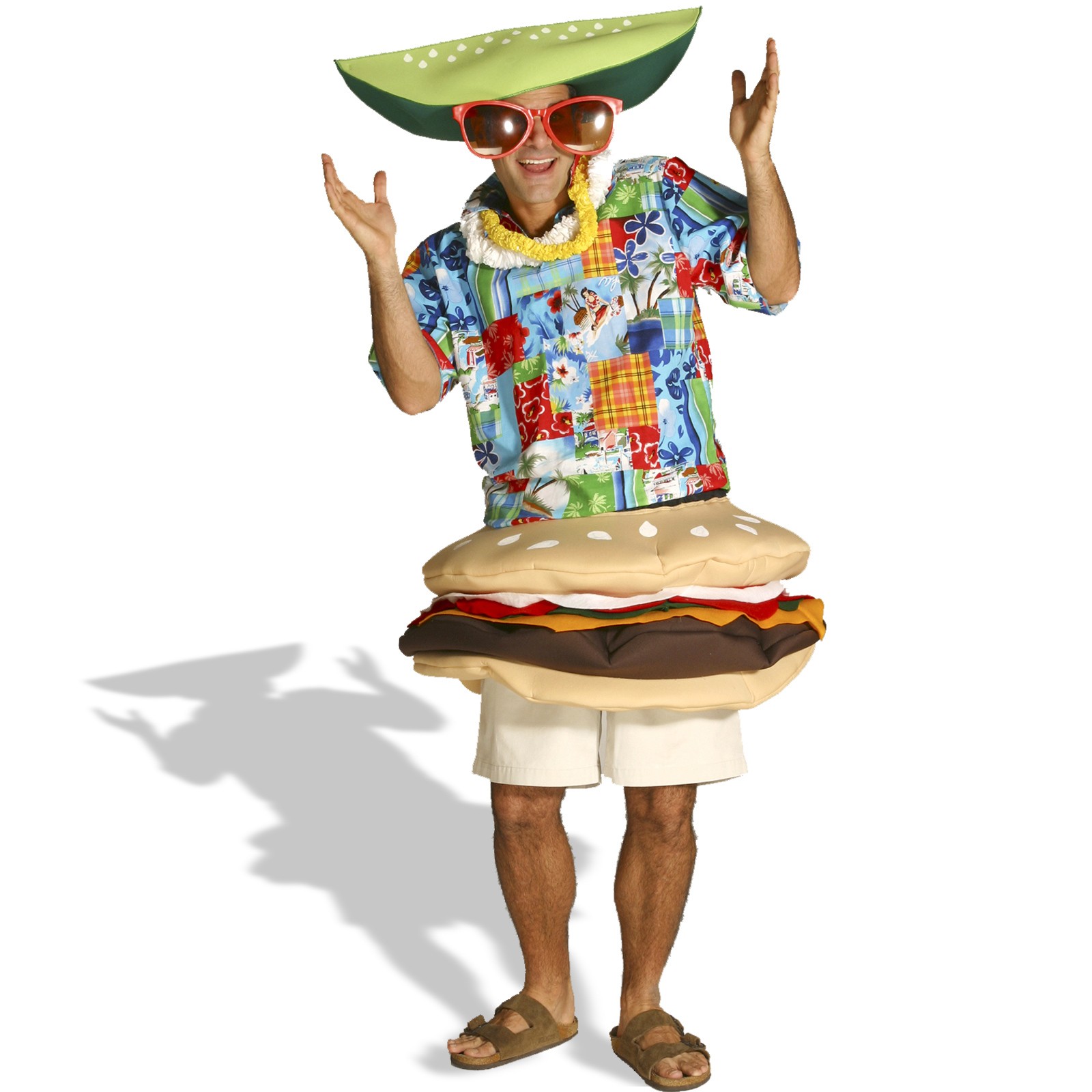 “The Adult Unisex Deluxe Cheeseburger Costume is a deluxe cheeseburger indeed. The plush one-piece costume is a knee length tunic with all the details of a deluxe cheeseburger.