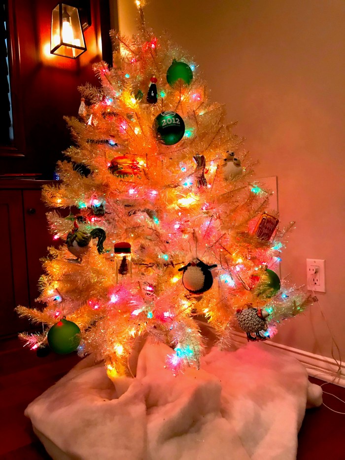 This “mini-tree” in our back room is where Alex puts all of the “more unique” ornaments!
