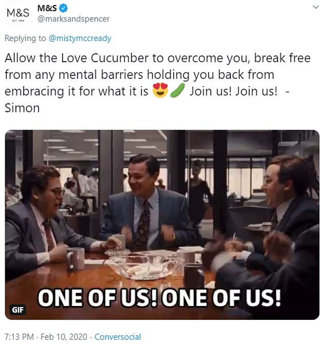 The caption read: ‘You’ve heard of the Love Sausage and now it’s time to try our Love Cucumber!