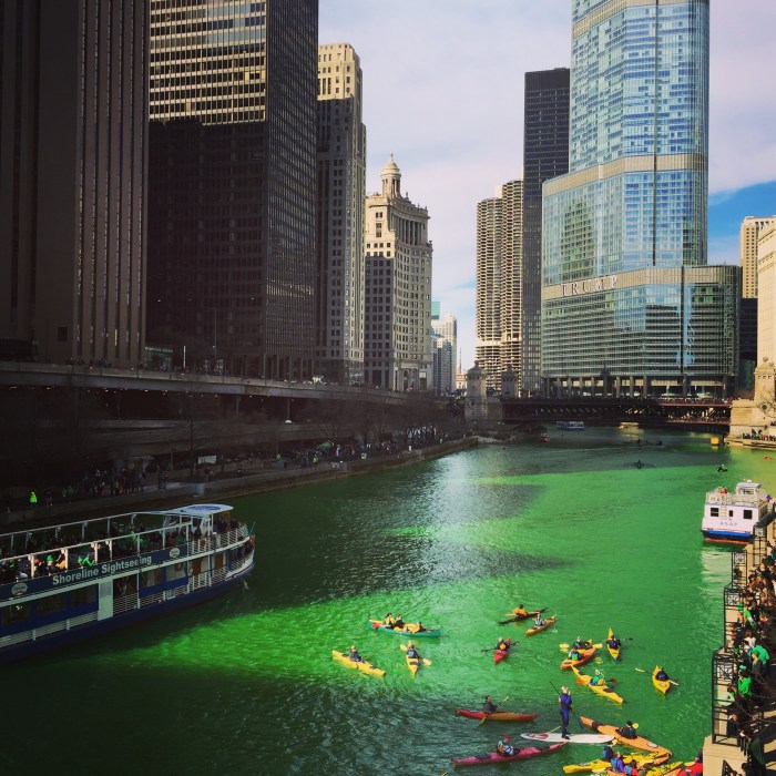 Sad news to share, so I wanted to share my pictures of when I was in Chicago during this time of celebration – beginning with the “painting” of Chicago’s river!