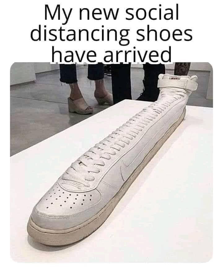 Published at 720 × 884 in #Quarantinelife Signs! “What The Friday?!?!” Check Out These “Social Distancing” Signs! And Six-Foot Tennis Shoes!