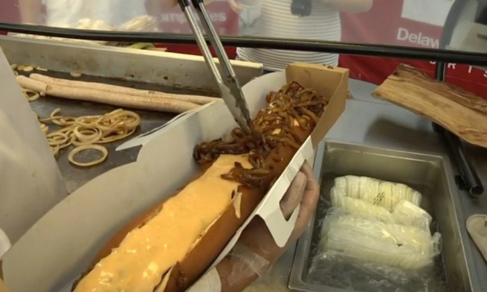 According to reports, the ballpark sold nearly 20,000 of the monster hot dogs during the 2012 season — the Boomstick’s inaugural year — raking in an estimated $500,000 in sales!