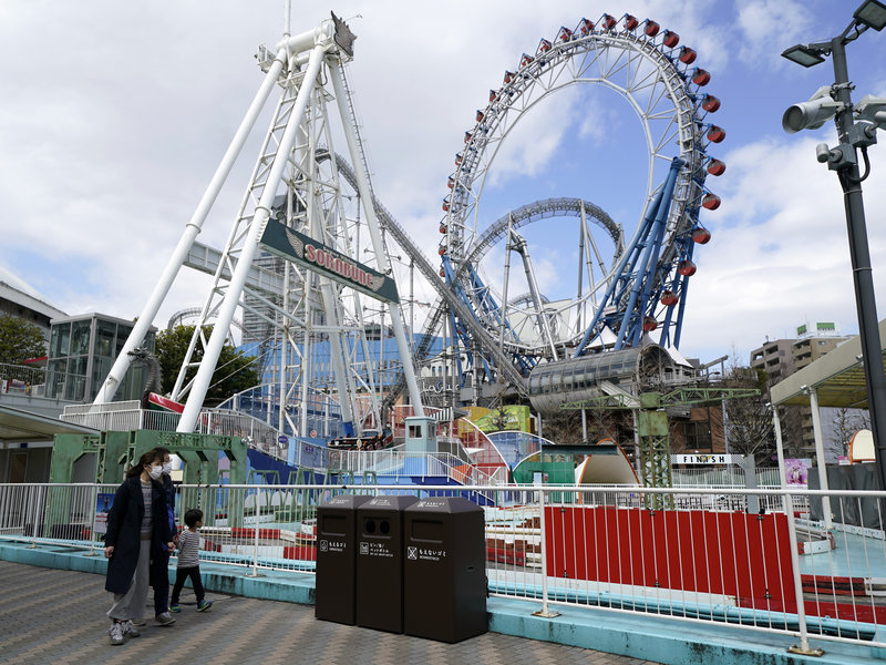 Japan’s Tokyo Dome is shown before amusement rides began to reopen in the country. Japanese amusement park operators have asked people on rides at some parks not to scream.