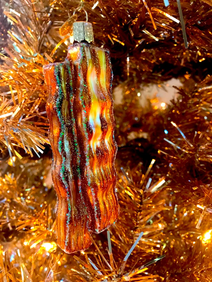 It all began when my friend Steph found this ornament and immediately thought of me: bacon of course!