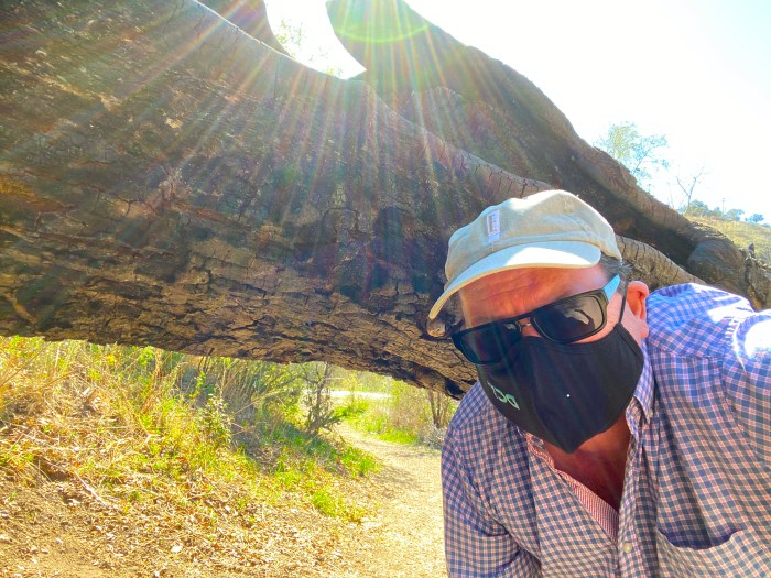 What a beautiful place to hike. The felled tree is stunning. What a shame that the pipes and pumps weren’t enabled when the Robert’s ranch caught fire. Yet, things happen for a reason. Because of the fire, people can now walk the blueprint.