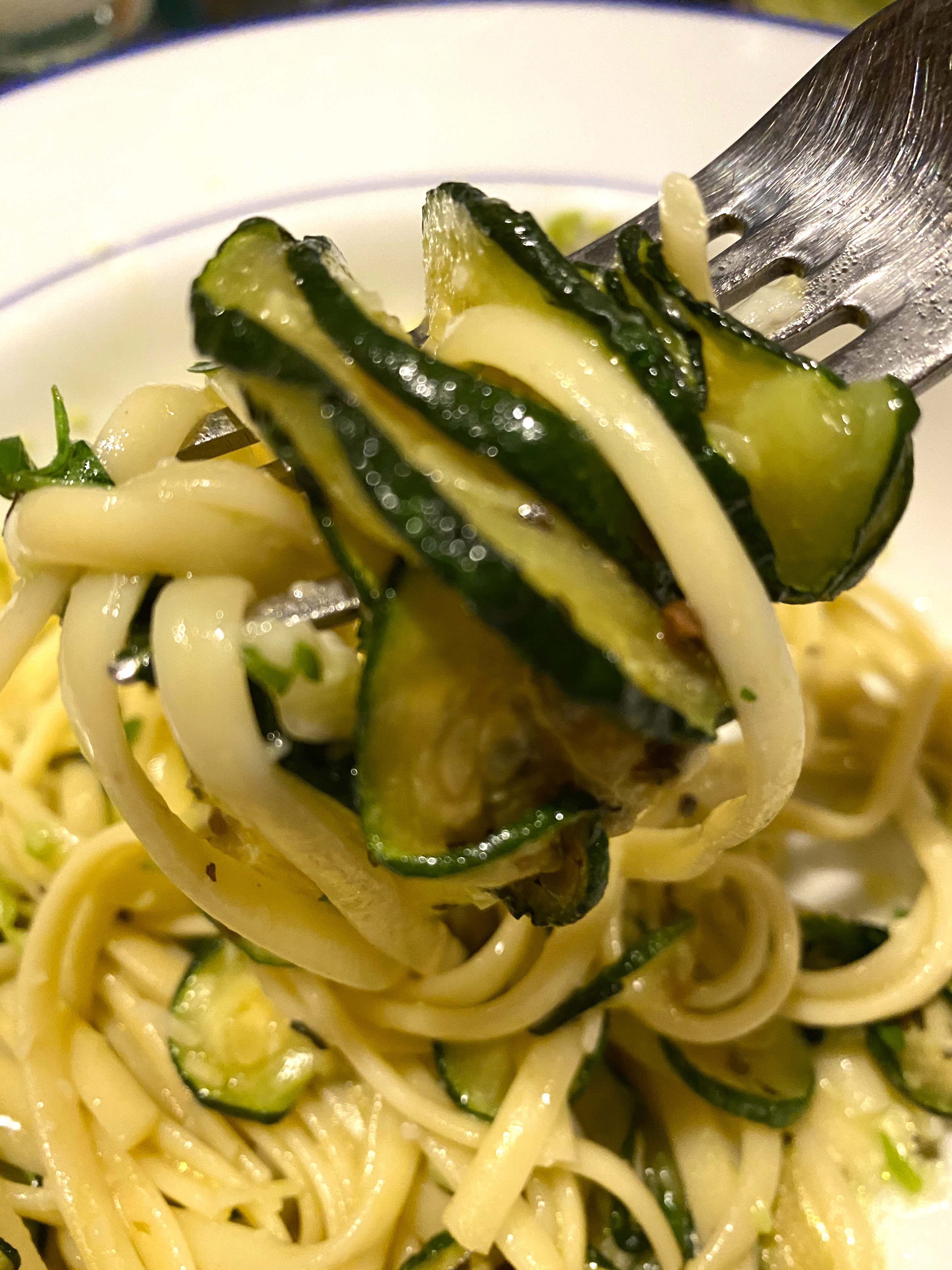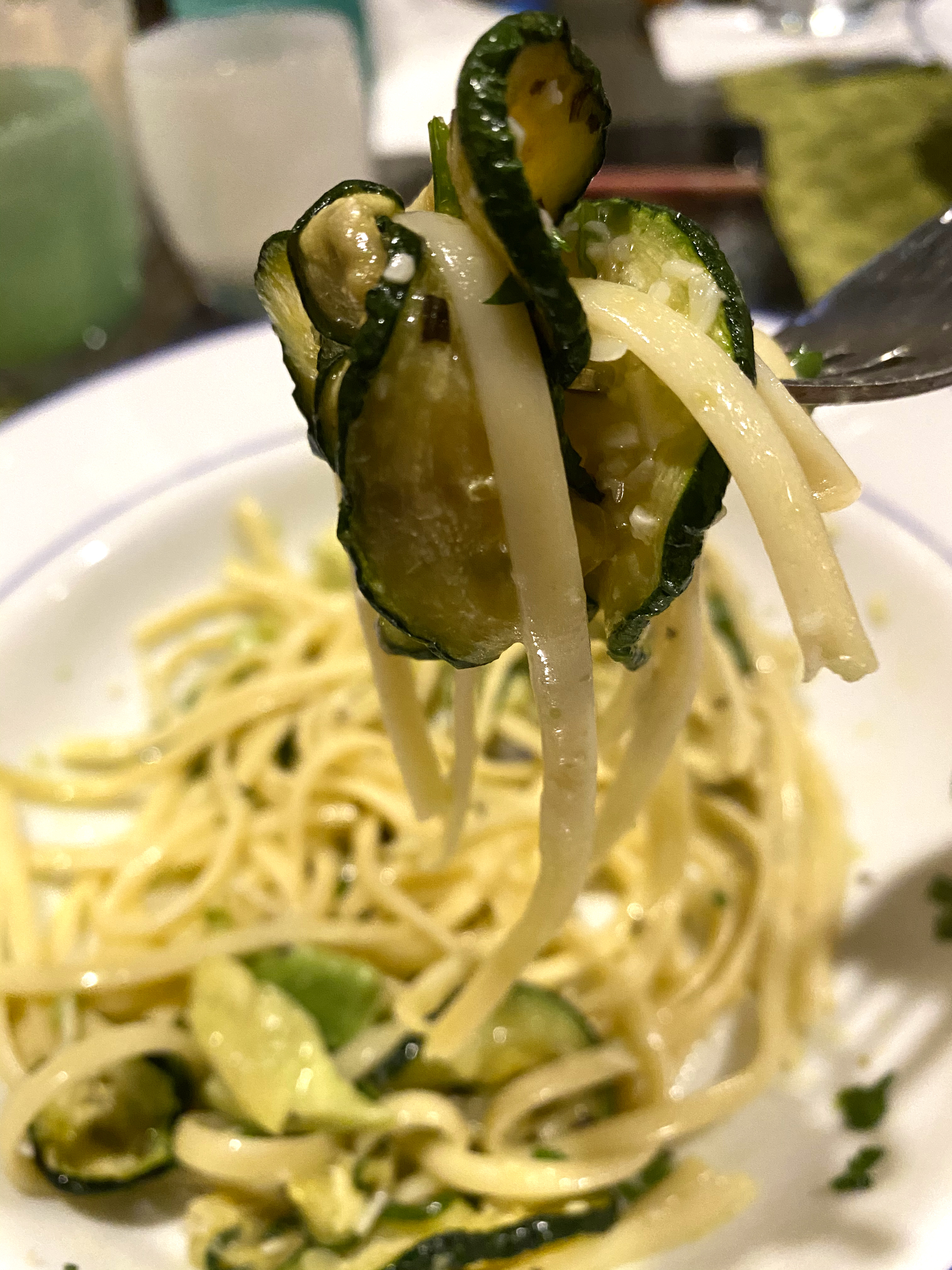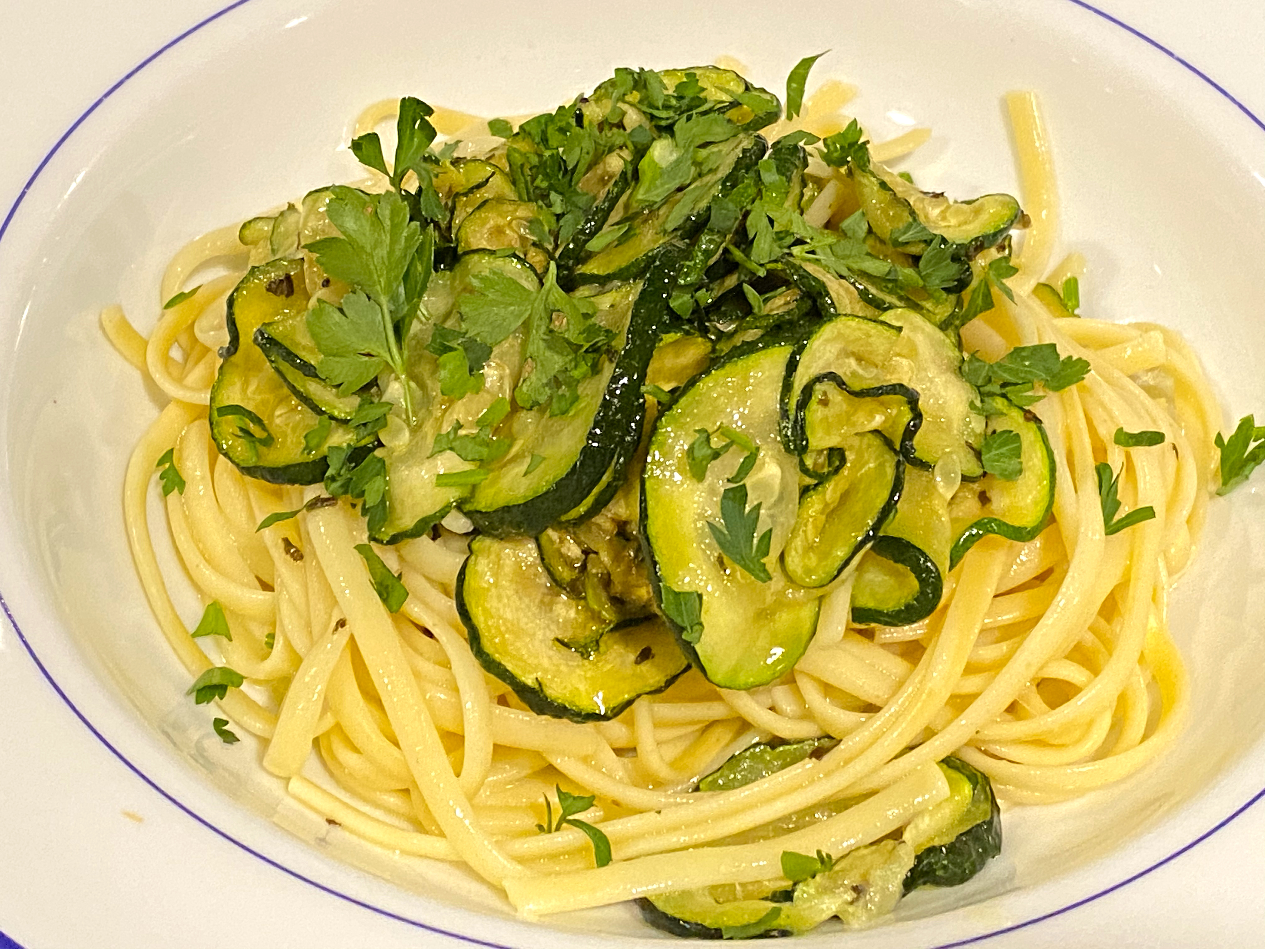 I piled the pasta in a bowl and then put the rest of the zucchini on top, before sprinkling some fresh parsley over it all…the original recipe called for fresh basil, but I didn’t have any!
