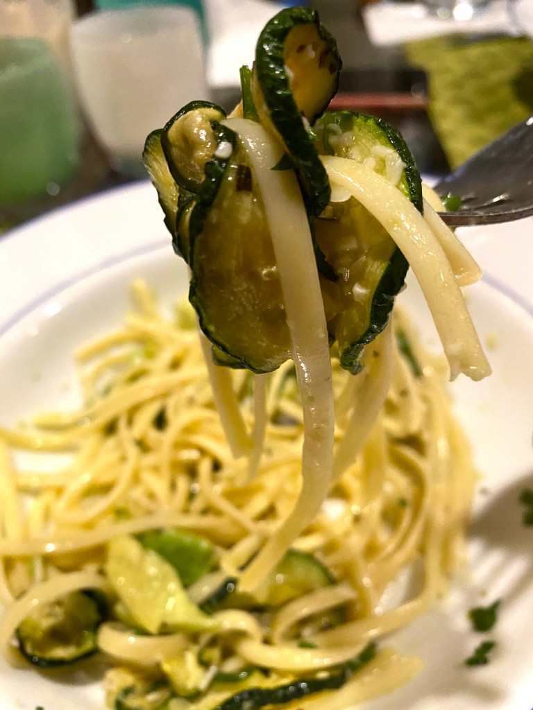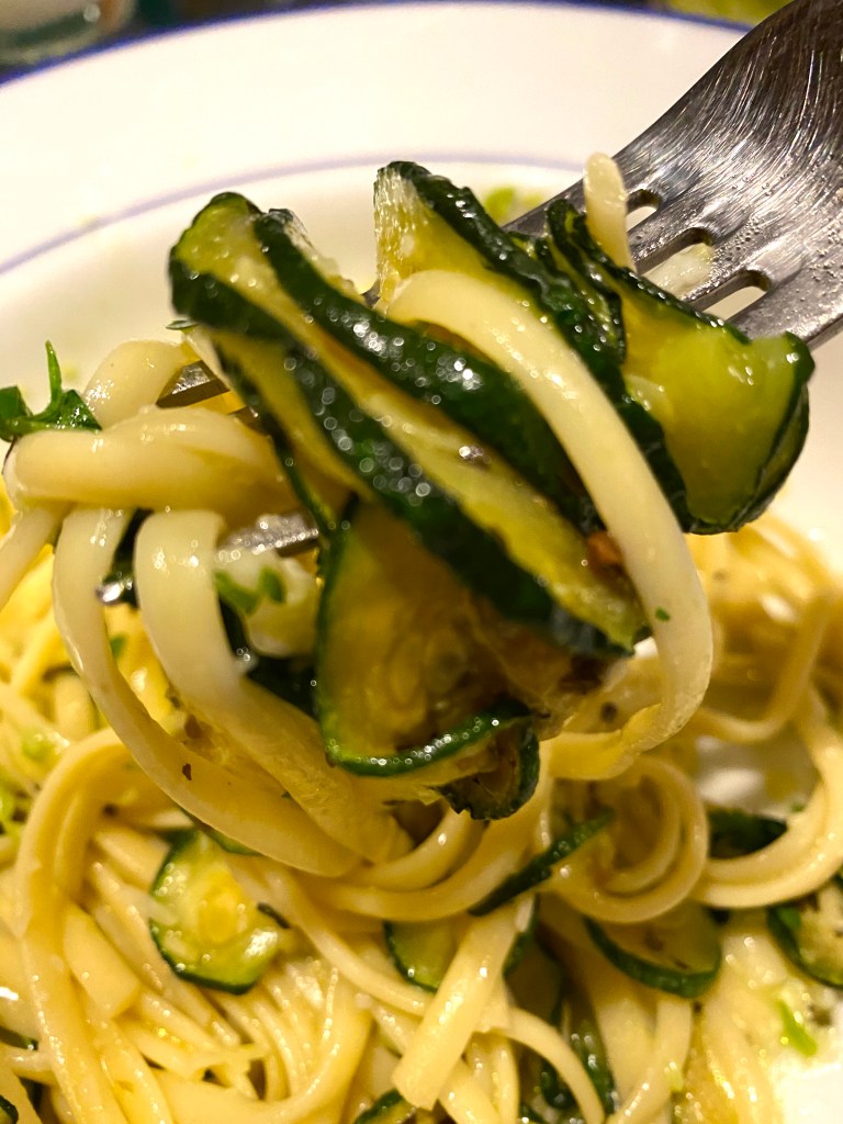 Well, it was delicious, and here’s why: the noodles were buttery and creamy, and the zucchini had a nuttiness from the frying – the combo makes for a rich, fresh pasta dish and Alex and I loved!