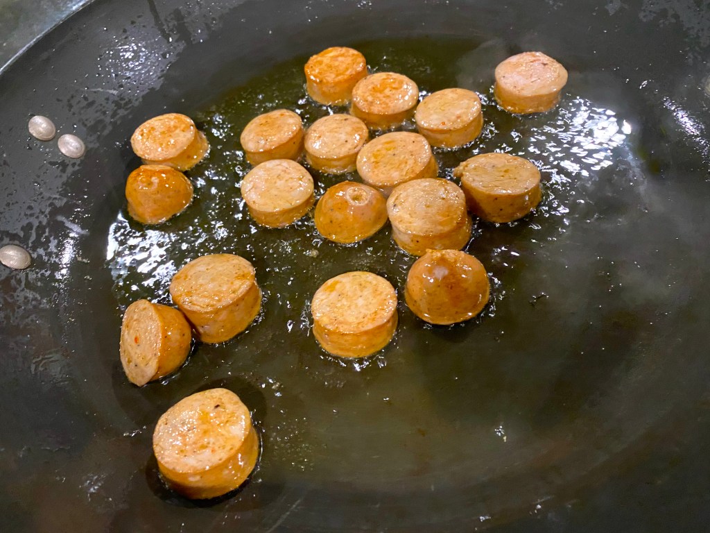 Once those items were pre-cooked, they were set aside…next up, pre-cook some of the seafood!