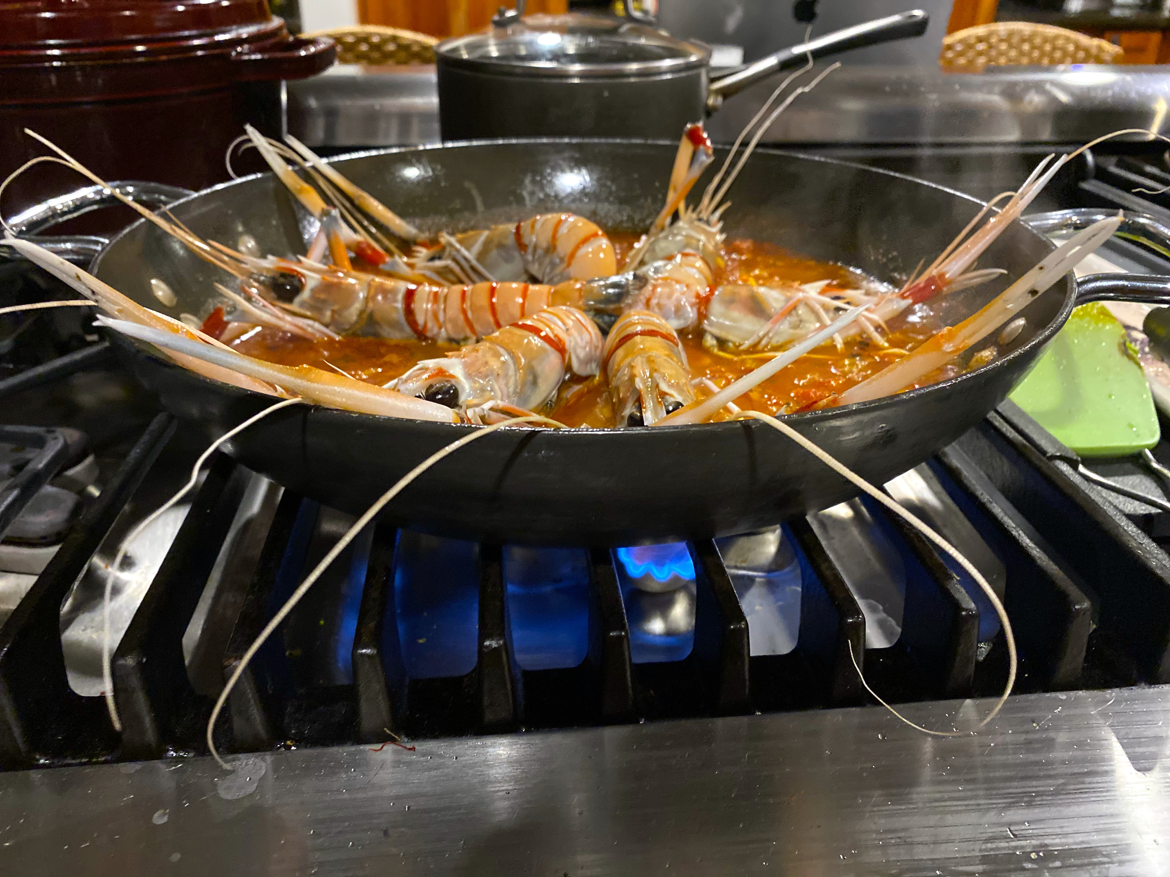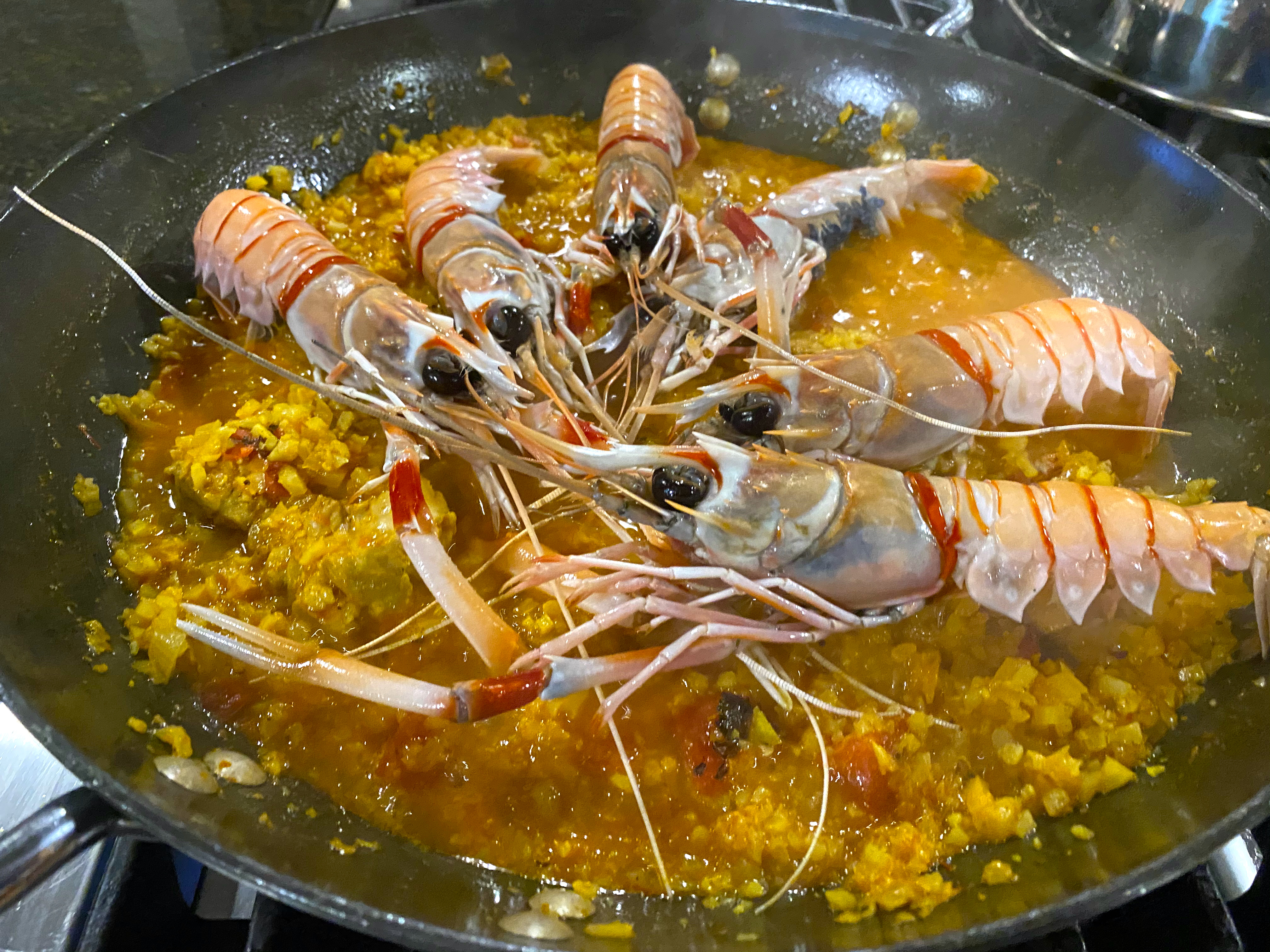 Yes, the centerpiece of this Paella is going to be these beautiful Langoustines…and thanks to the terrific food emporium Eataly here in Century City for supplying these gorgeous fellows…as well as fresh Clams, Mussels, Chicken Thighs and Chicken Chorizo!