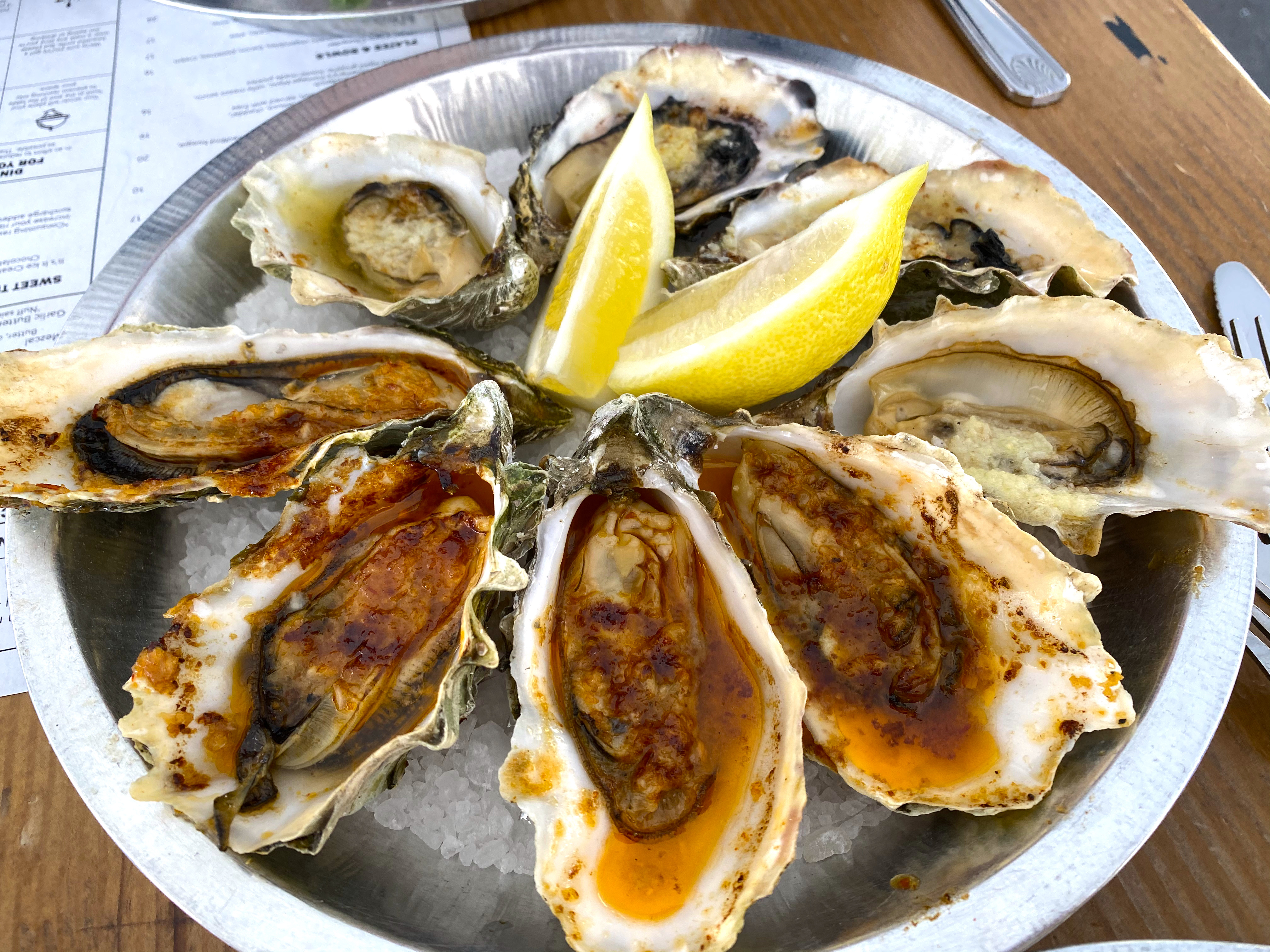 There are great places to eat in the town of Pt. Reyes close by, and along Tomales Bay you can get fresh oysters at Hog Island Oyster Company to enjoy as well, so we did: