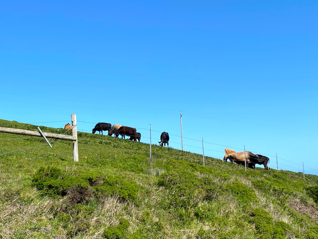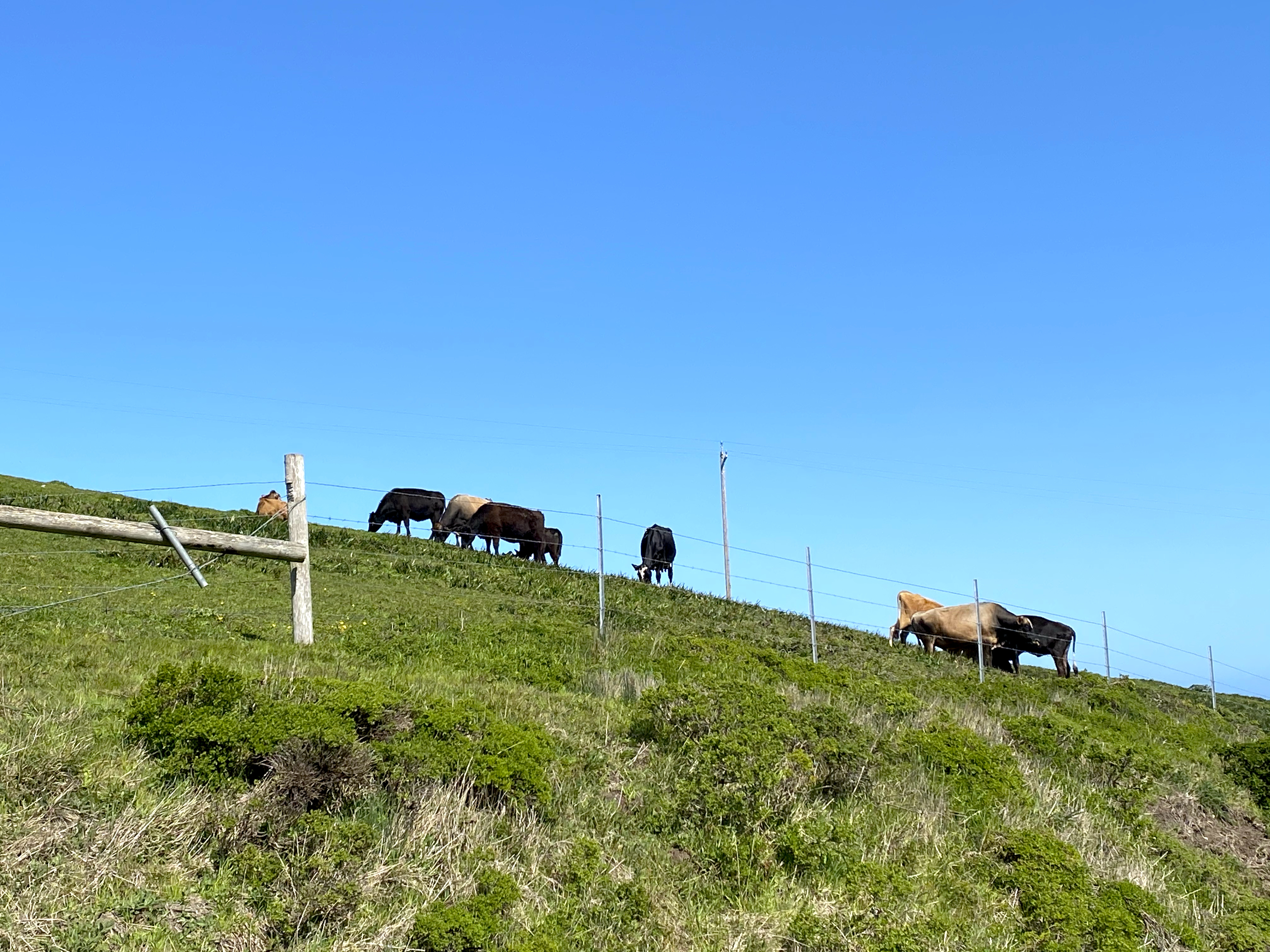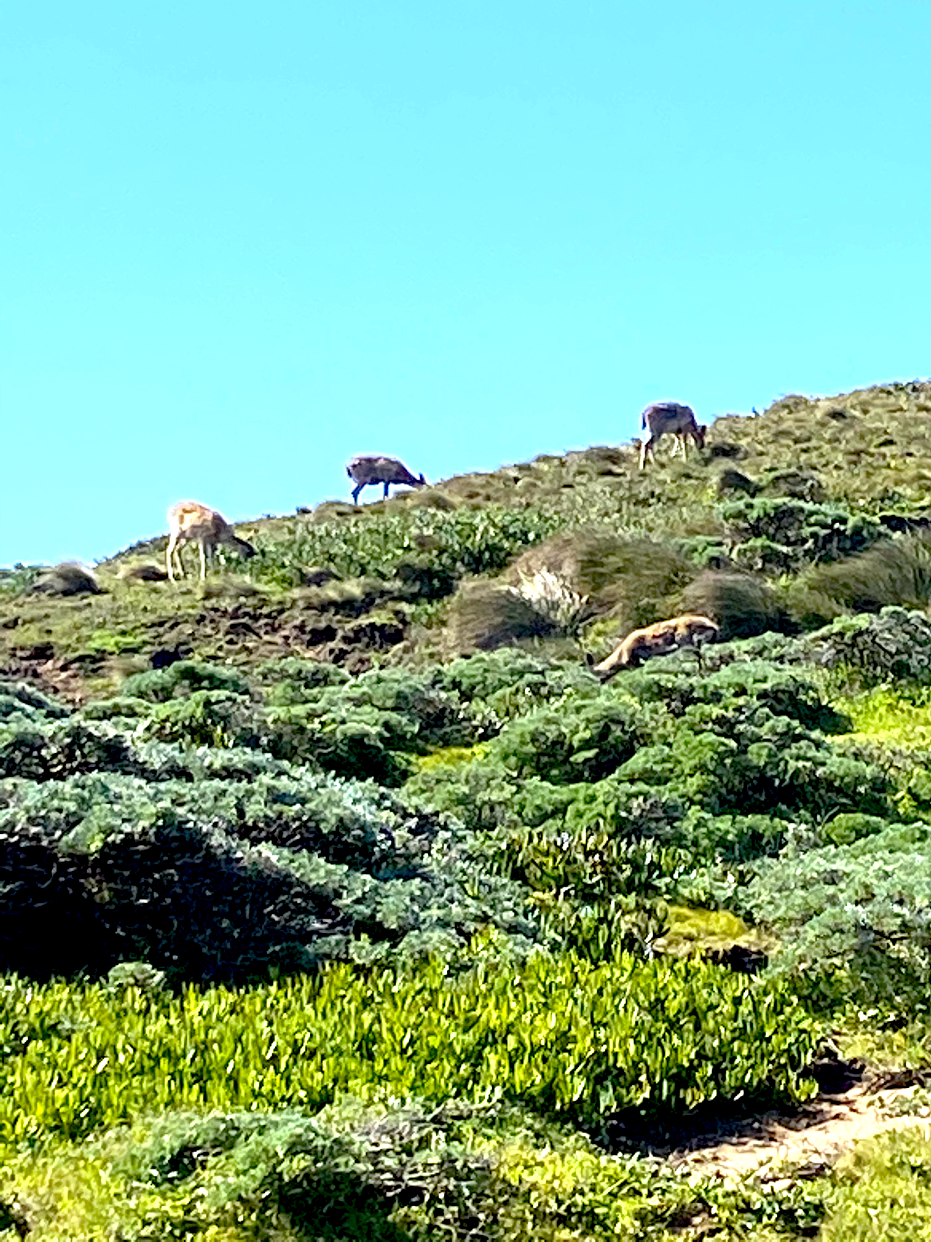 We continued on, walking the quarter mile up the remainder of the hill, with the seashore on one side, and wild deer grazing on the other.