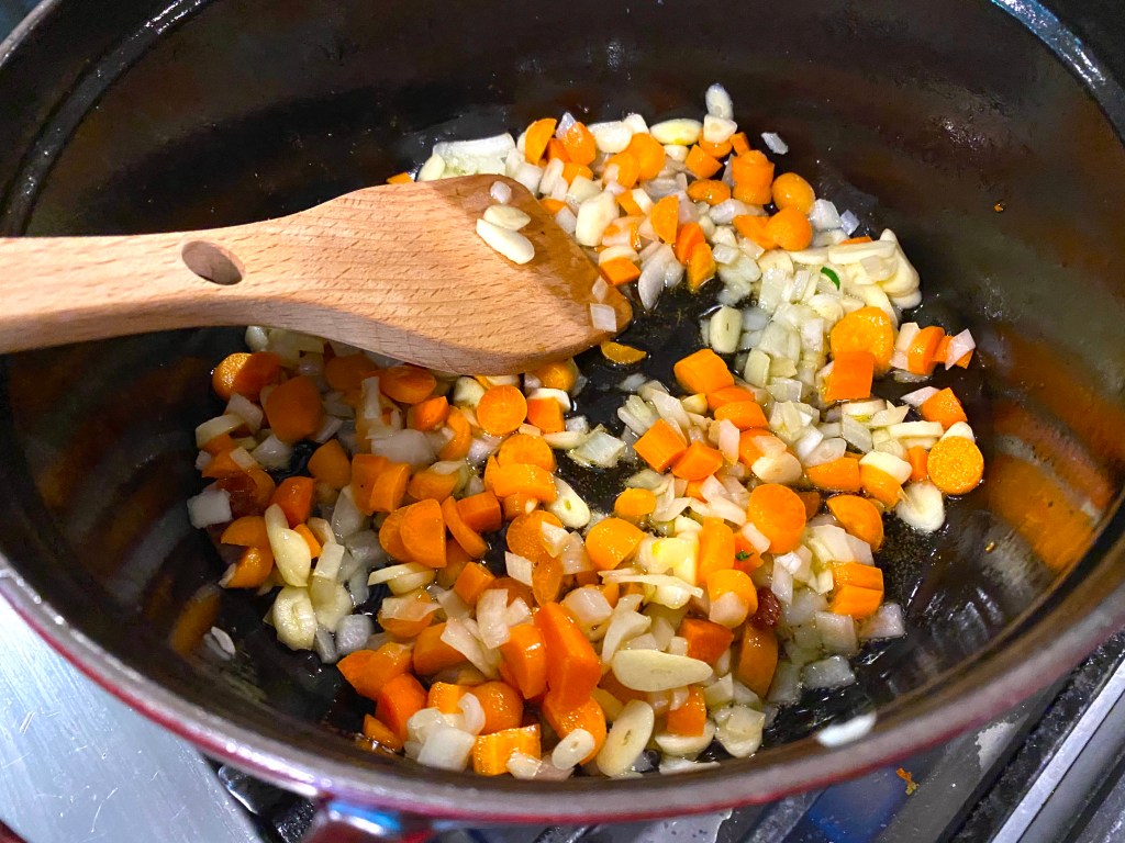 One Onion – One Carrot – lots of Garlic – one stalk of Celery
