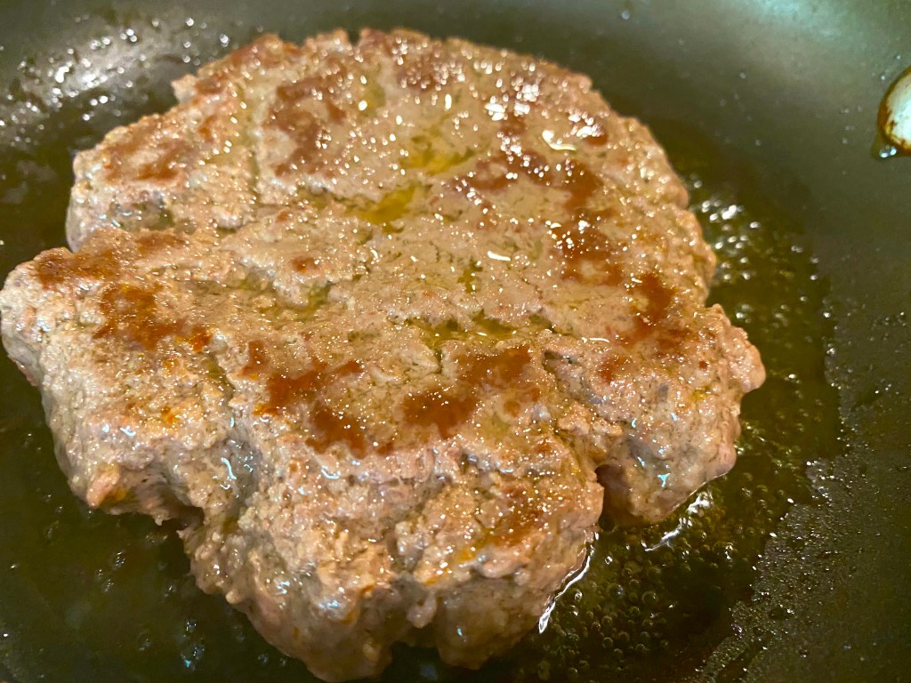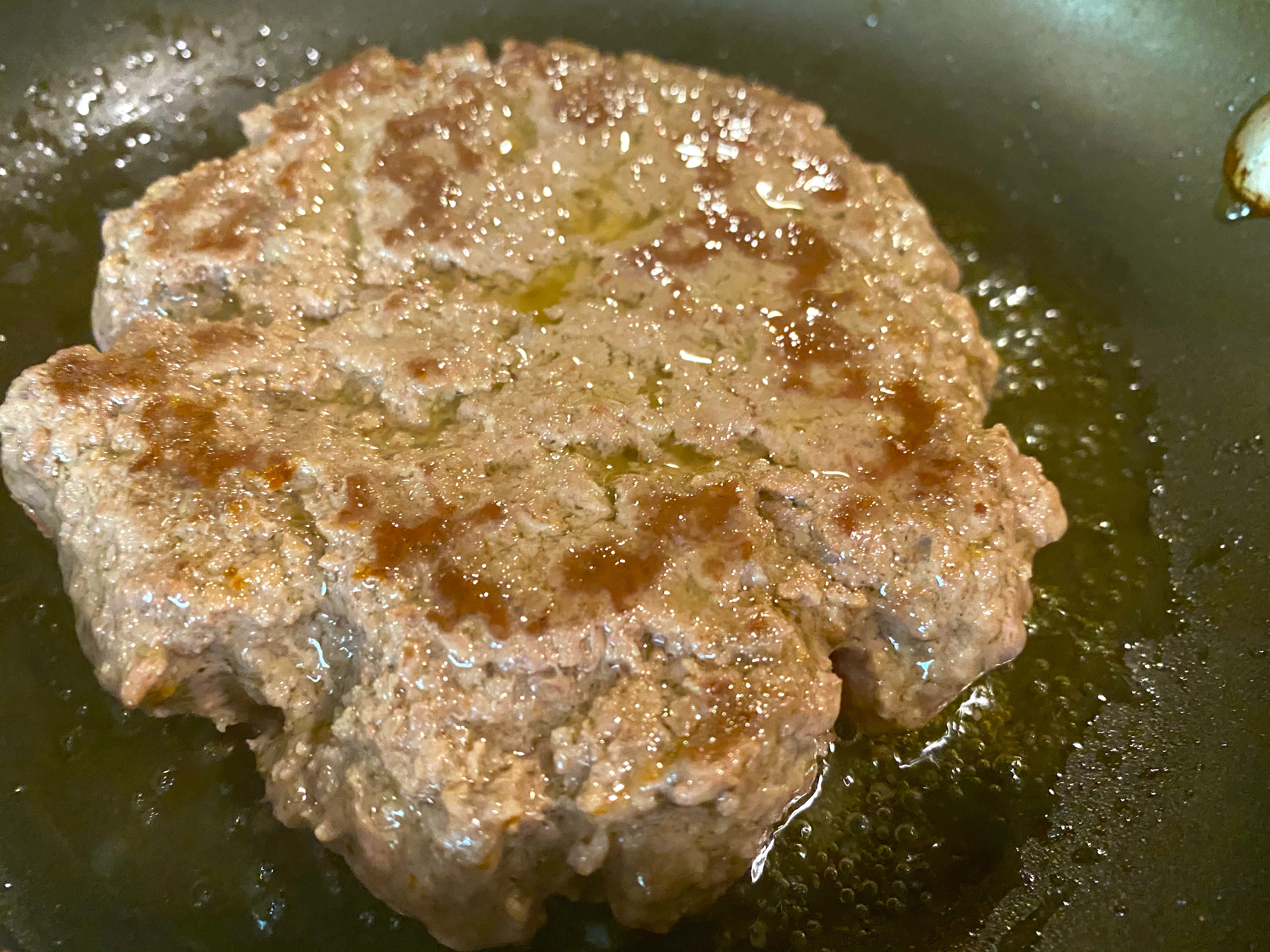 Now, I have a short video of the burger cooking in the pan, because it always sounds so enticing!