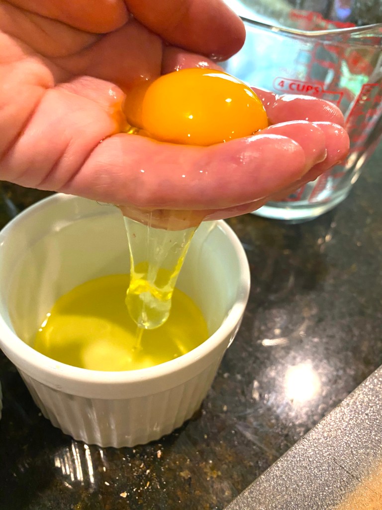 First, I separated my egg whites and yolk…I crack the egg and then let the whites slip between my fingers into a bowl…easy!