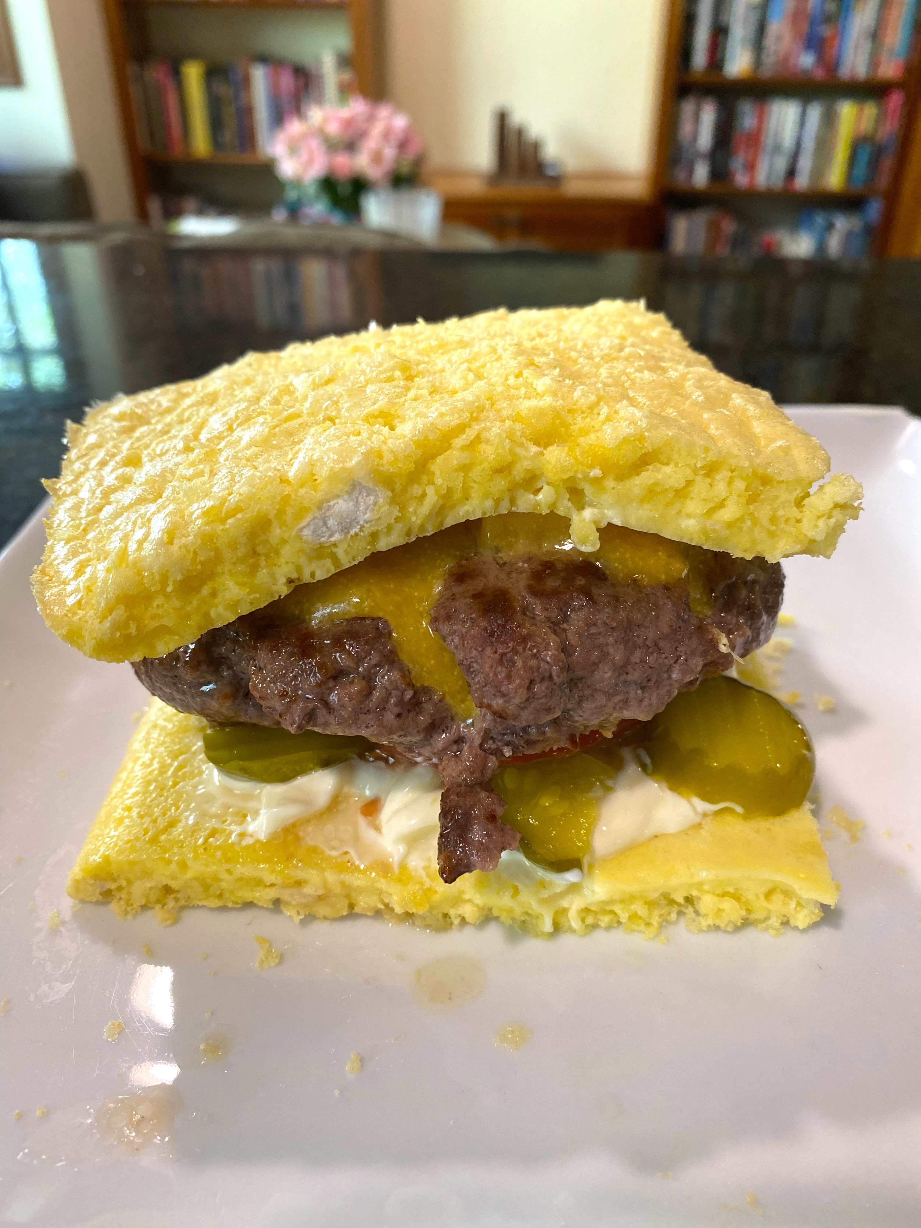 Okay, that Oopsie bread might be nice, but I want a nice bun with my burger. I can’t have a burger tonight, as we have an Indian lamb curry that my wife has cooked from scratch. However, eating inside is now ‘open’ again in England, and I have booked a table for Sunday evening at a pub where I know I can get a nice juicy burger!