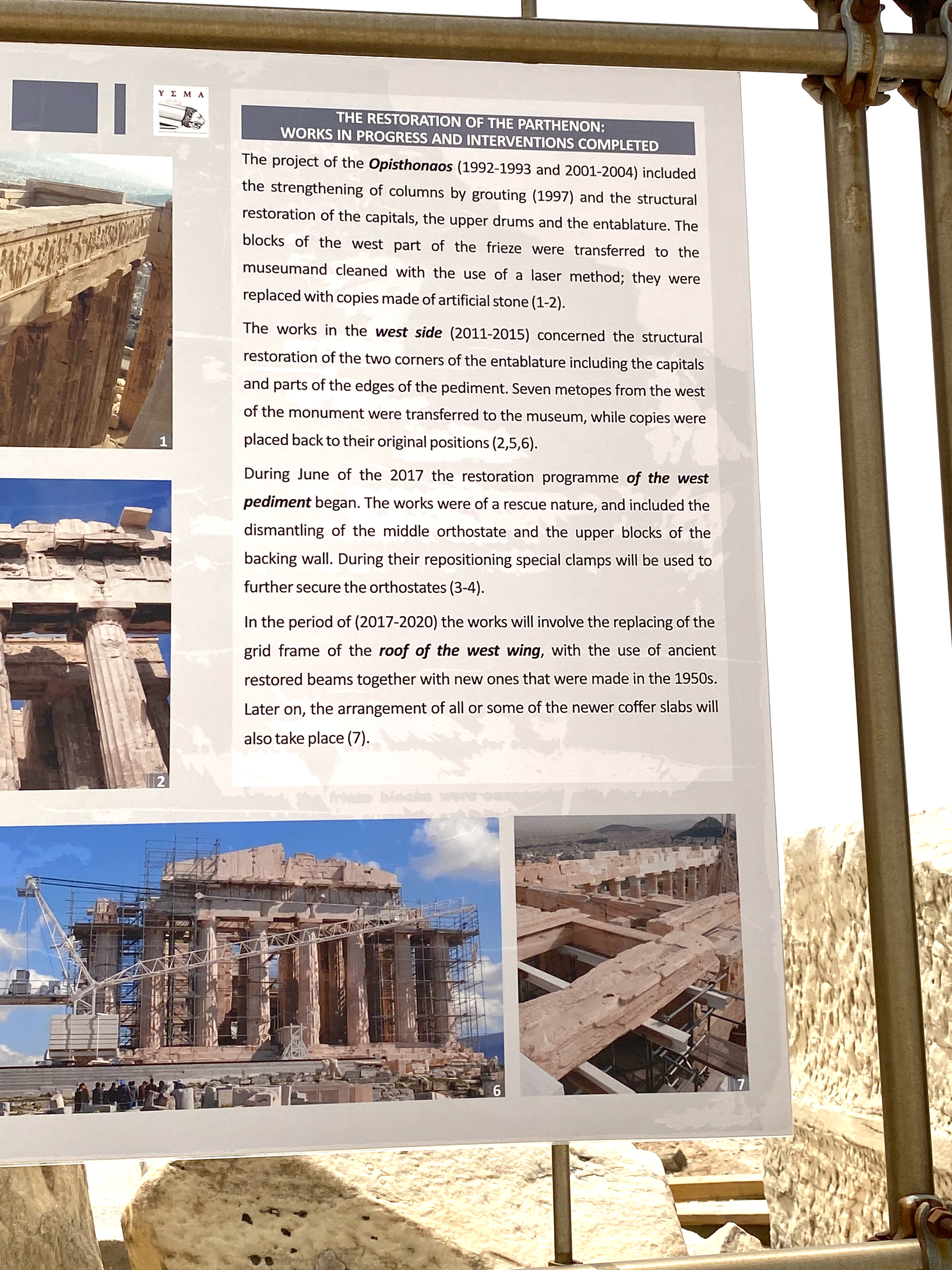 You will find out on the tour that much of ancient Athens was destroyed: either in centuries of battle, or pillaged for building materials…so they are working to preserve the ancient buildings and monuments that remain.