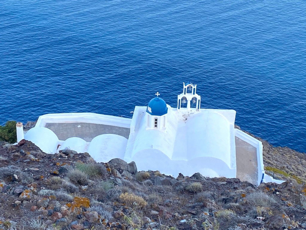 From the top, we looked back at our hotel, The Grace, and the small town of Imerovigli as well: