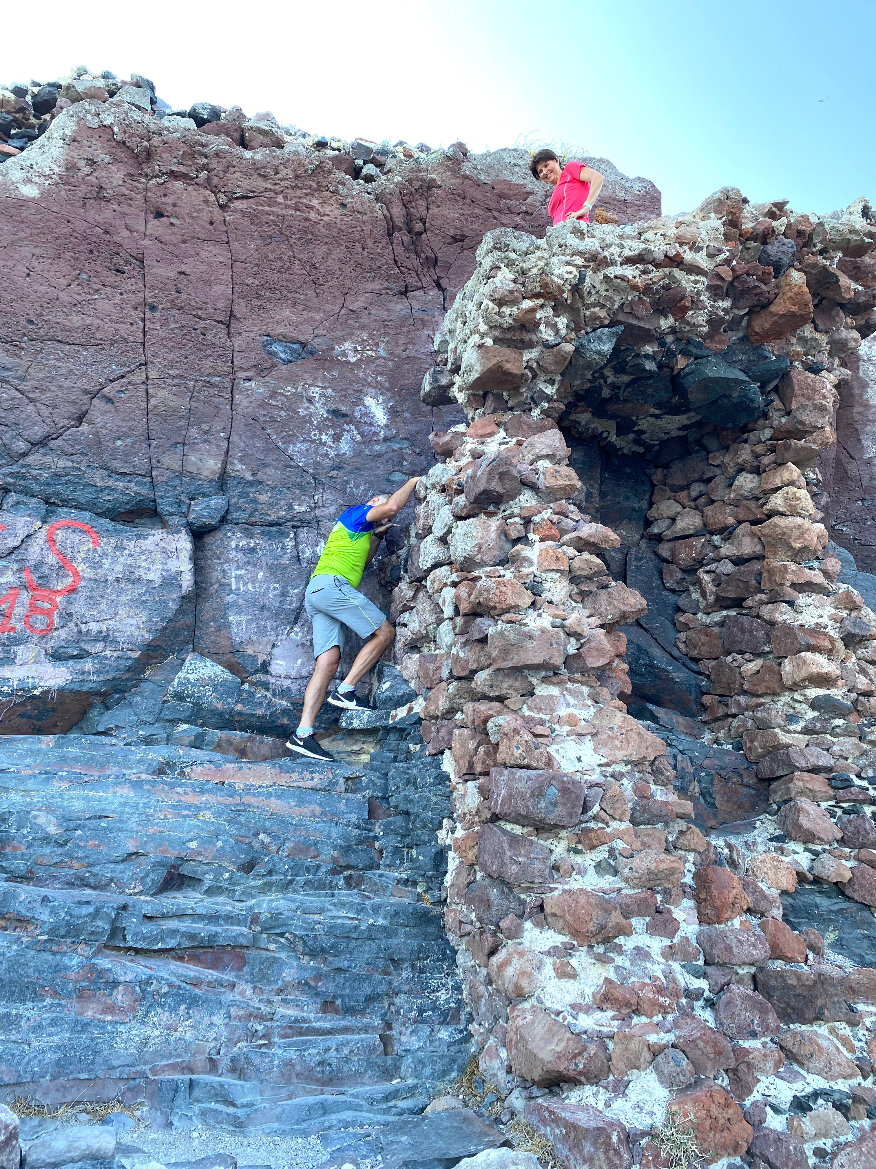 What A fabulous vacation you are having! The rock must have made you feel like a small child and in wonder. Maria’s comment about Smith Rock is my closest comparison to Skaros. Your photos are spectacular. Thank you! Please ask Alex where she got her t-shirt, as that is one of the big points I always make. I need that t-shirt. 🙂