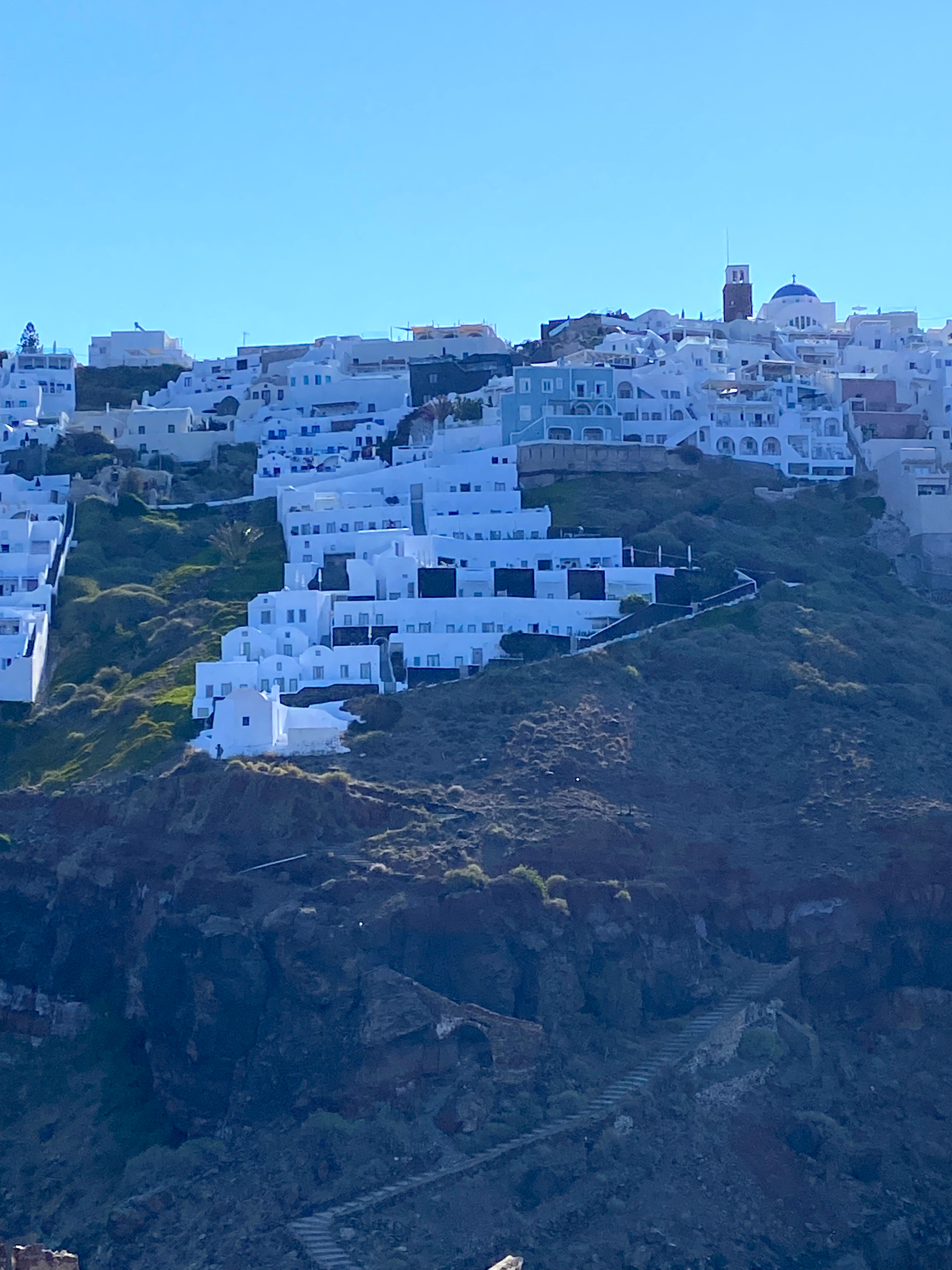 From the top, we looked back at our hotel, The Grace, and the small town of Imerovigli as well:
