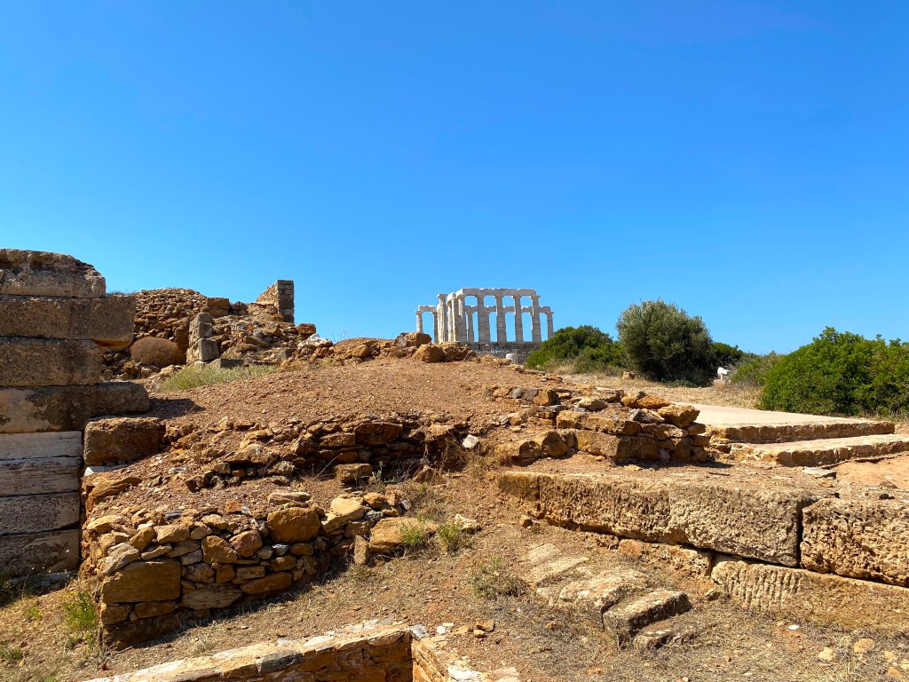 That’s right: from here there’s no place to go but into the Aegean Sea and over to Africa – with hundred of Greek Islands in between of course…and it was standing on this spot where we saw what lie ahead: The Temple Of Poseidon.