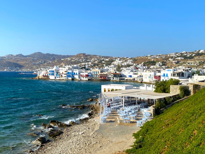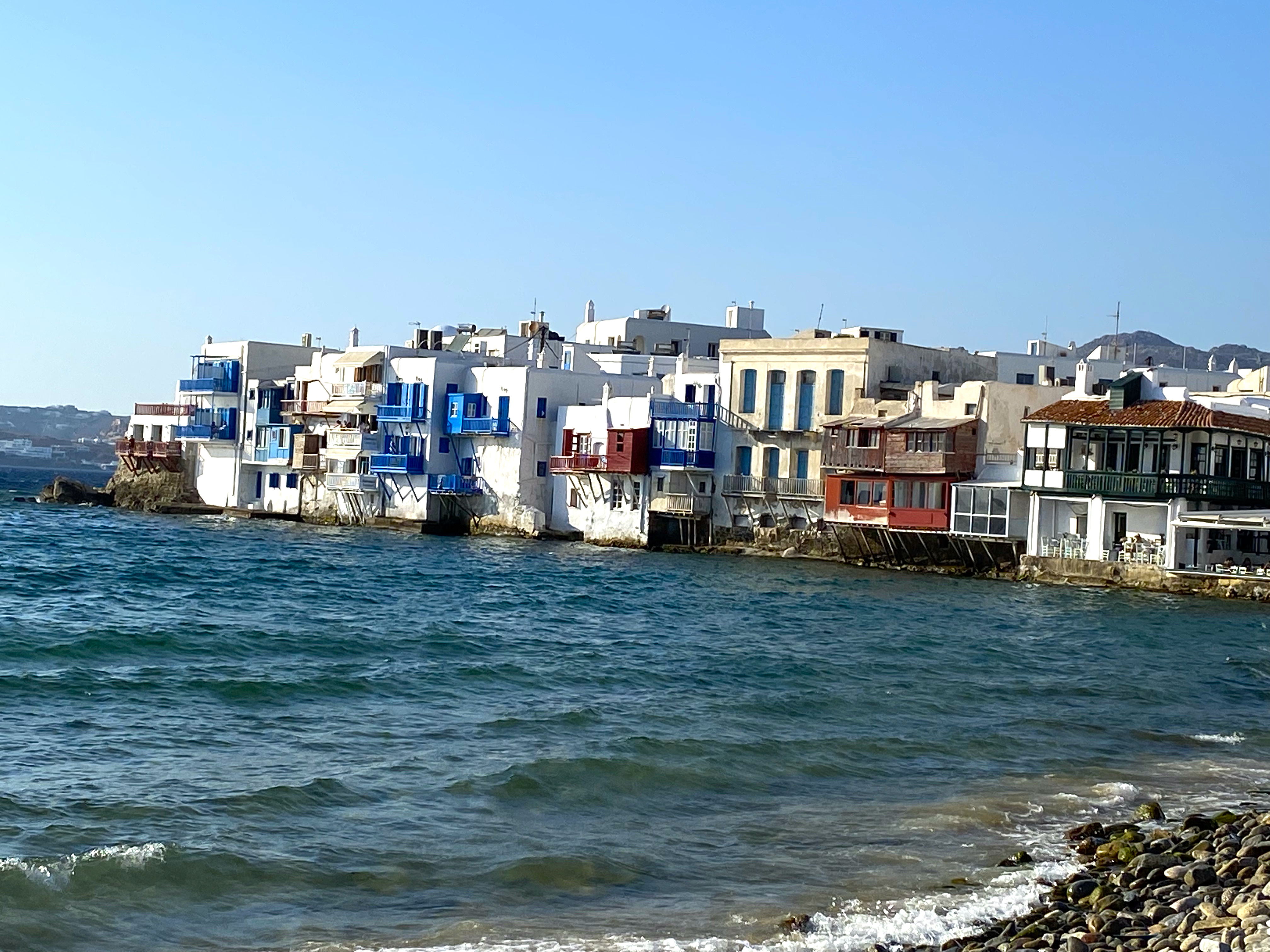 This is Mykonos Town, the main entry to the incredible Greek Island of Mykonos, located in the Aegean Sea…and a fun strip of buildings known as Little Venice…more on this terrific town in a minute, but first: