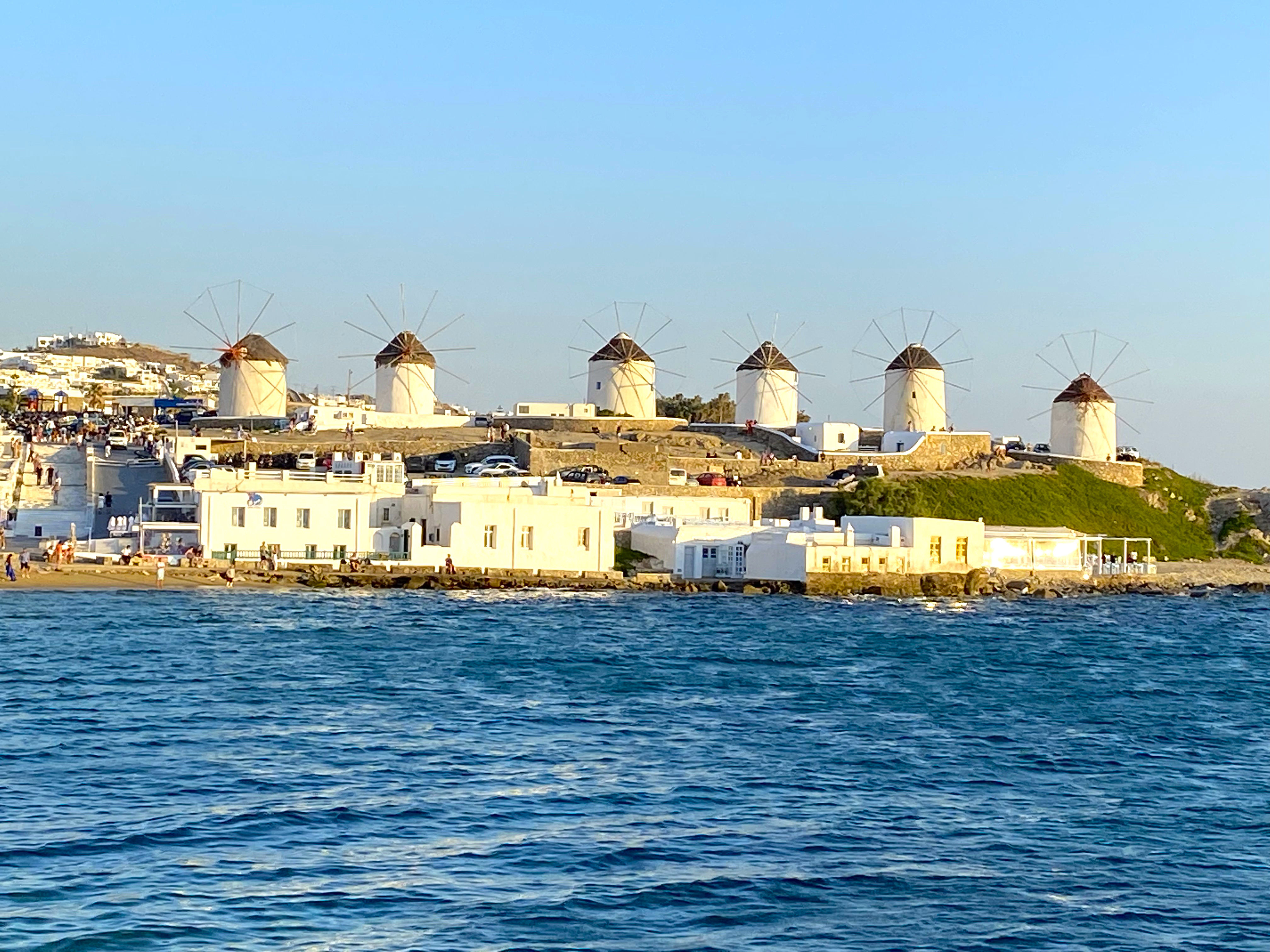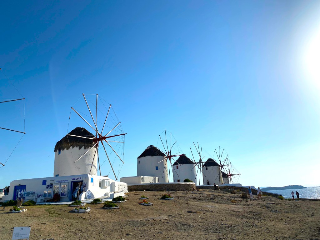 Yes, these are the most popular tourist stop in town: the legendary Mykonos Town Windmills!